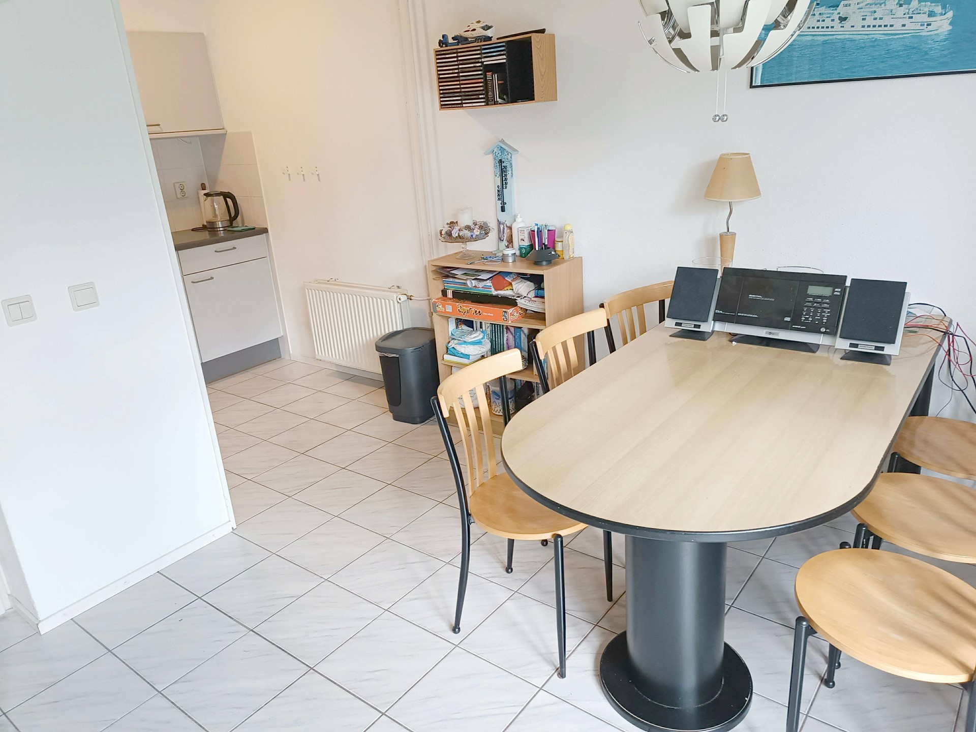 Half open keuken v.v. alle gemakken o.a. magnetron- oven en koeler. Badkamer ligbad, v.w.t. en douche, vaste wastafel , toilet en berging/bijkeuken. Deze woning zal verkocht worden met volledig inventaris.